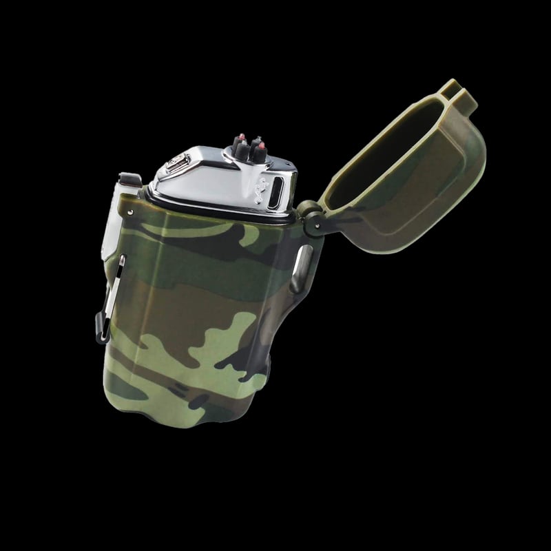 Dual Functionality: Combines a powerful electrical arc lighter and a bright flashlight in one compact, camouflage-colored device, enhancing